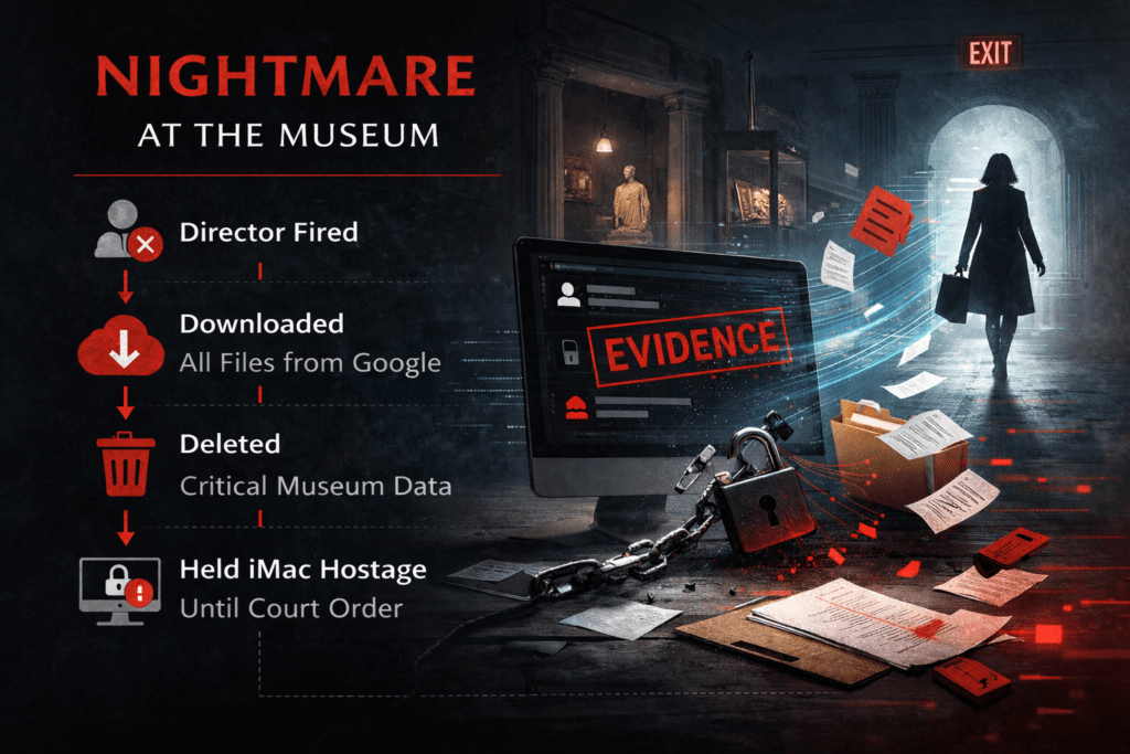 The museum’s Director of Operations was terminated for misconduct and had their access scheduled for offboarding. Shortly after the termination, the museum noticed unusual activity tied to the former director’s Google Workspace account. Over a short window of time, the former director signed in and began pulling down large volumes of data from Google Drive, including operational documents and internal files the museum relied on day to day. After downloading the data, she deleted those same files from Google