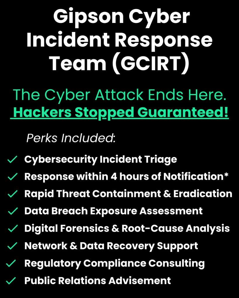 Gipson Response is built for small internal IT teams that need real Cybersecurity, not just alerts. We bring expert cybersecurity help, proactive threat hunting, and an incident response team that’s ready when things go sideways.